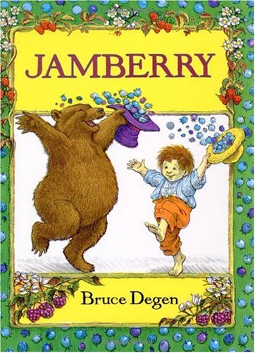 Hat and boot in hand, a boy and a bear set off on a delicious and raucous romp through Berryland. They frolic in strawberry fields forever, rumble and ramble in blackberry brambles, and topple their canoeberry with blueberries. Silly rhymes and a musical beat practically beg to be read aloud, preferably accompanied by dancing. New readers will giggle as they follow the fruit-frenzied pals on their berry adventures. Jamberry builds quickly in intensity and complexity, starting with "One berry, Two berry, Pick me a blueberry," and working up to "Raspberry, Jazzberry, Razzmatazzberry, Berryband, Merryband, Jamming in Berryland." Children will love discovering the subtle touches in Bruce Degen's illustrations: a frog climbing out of a hat, crackers and butter instead of lily pads, and a sign by the raspberry skating rink imploring skaters not to pick the jelly rolls planted nearby. Every character seems giddy with well-fed joy in this veritable jamboree of flavorful fun. Jamberry is a book best enjoyed on a gloomy day with a dollop of vanilla ice cream. (Baby to Preschool) --Emilie Coulter